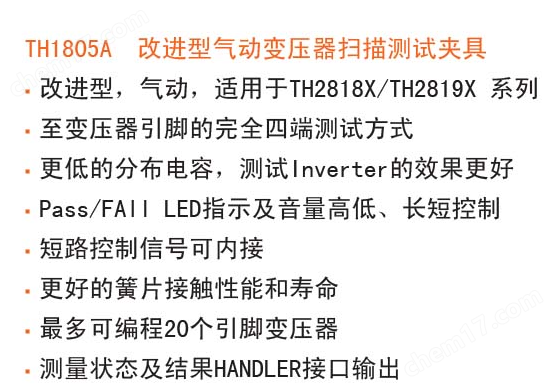 改进型气动变压器扫描测试夹具同惠TH1805A的详细资料