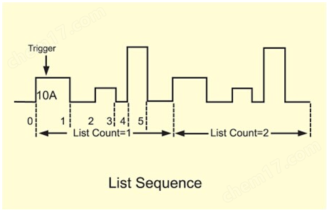 在选择不同触发源的情况下,通过编辑每一步的步值、脉宽和斜率,LIST 功能使您生产多种复杂序列,满足复杂的测试需求。顺序操作中的参数包括该组输入顺序文件的名称,输入单步数(zui多2-84步),单步时间(0.00002s~3600s)及每一个单步的设定那个值和斜率。顺序文件可被存储在非易失性内存中,供使用时快速取出。用户zui多可以编辑7组顺序文件。在负载操作模式为顺序操作时,当接受到一个触发信号后,负载将开始顺序操作,直到顺序操作完成或再次接到一个触发信号。