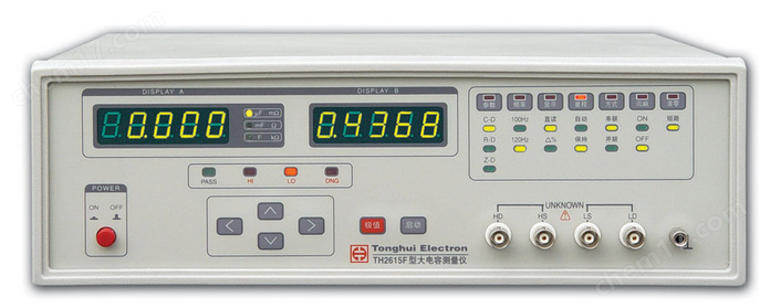 ■ TH2615F型大电容测量仪是一种专门针对大电容量电容器测试的高精度仪器,除了能测试容量、损耗外,还能测试电容的串联等效电阻ESR以及阻抗,满足生产线质量保证、进货检验及实验室高精确度测量要求。