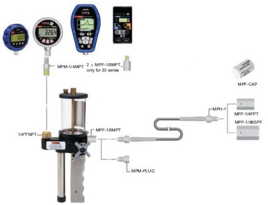 标准配置:T620H泵,MPF-1/8MPT(已安装在手泵侧面),MPF-1/4FPT,1M连接管MPH-1,MPM-PLUG堵头。